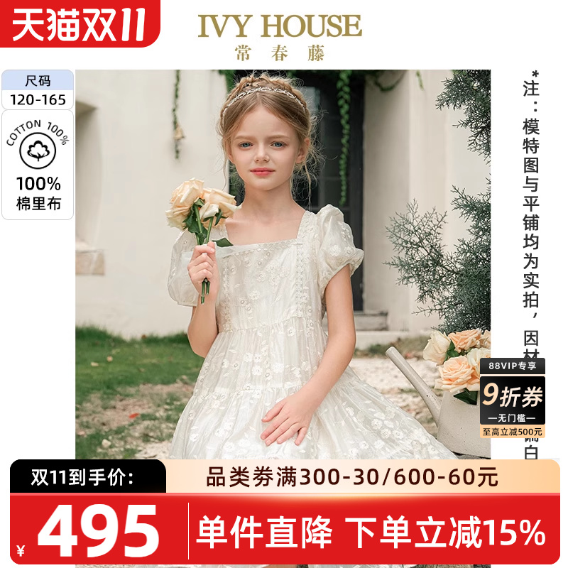 IVY HOUSE常春藤儿童装女童2025夏季新款 法式绣花仙女连衣裙亲子