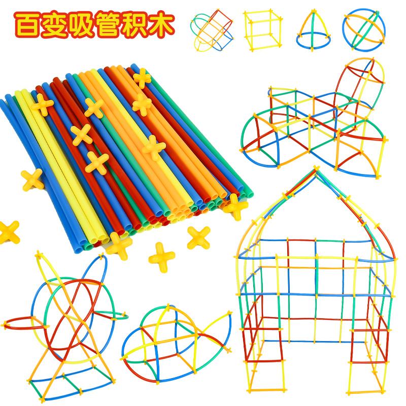 儿童吸管积木幼儿园拼插益智聪明棒3-6岁男女孩拼装房子搭建玩具