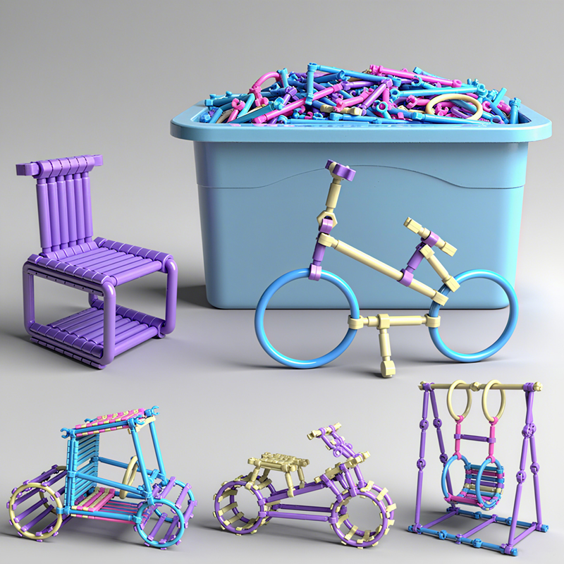 益趣软吸管积木魔法聪明棒构建拼插diy家庭学幼儿童玩具搭建益智