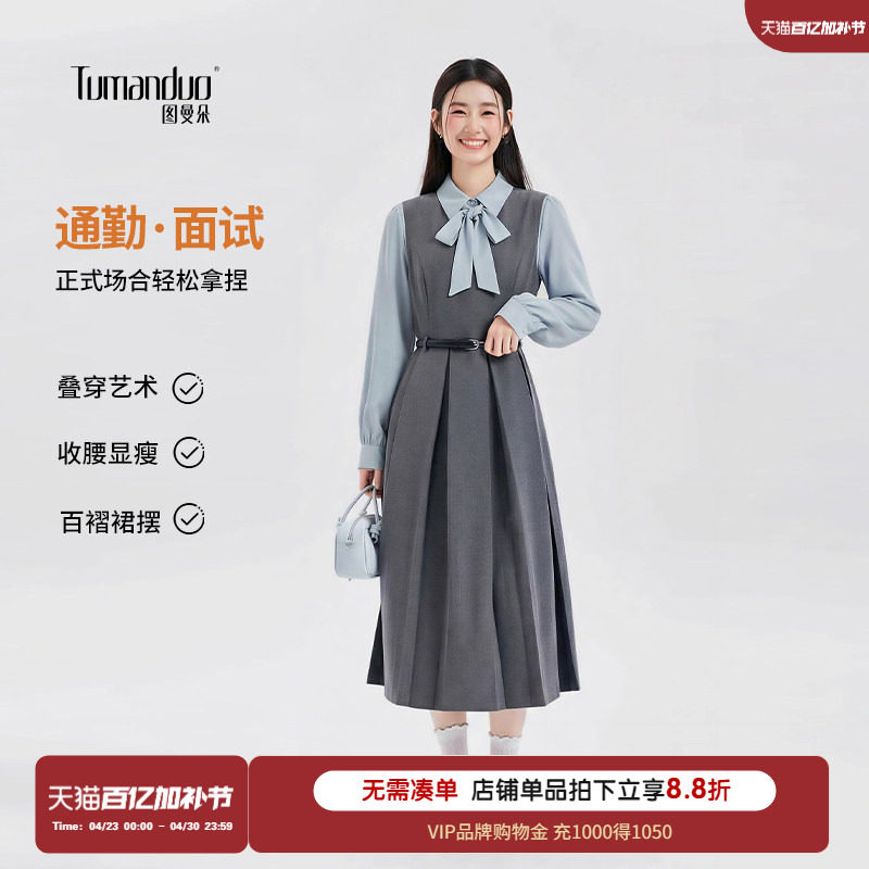 图曼朵灰色背心裙女装春通勤正装连衣裙复试面试套装教师穿搭长裙