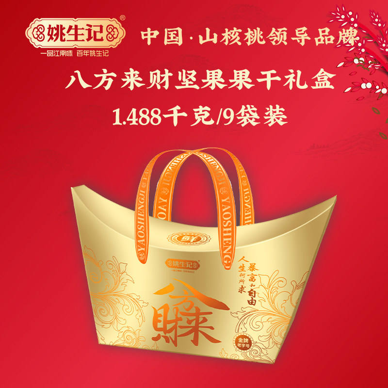 姚生记八方来财礼盒1488g内含9袋坚果炒货零食组合大礼包年货礼盒