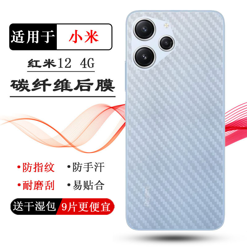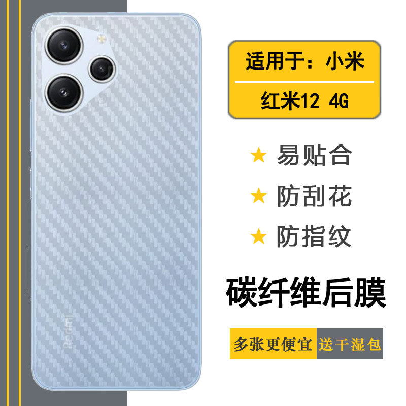 适用于小米红米12 4G手机专用碳纤维后壳膜半透明条纹防刮花半高清贴纸Redmi 12 4G磨砂半隐形后盖膜软性背面