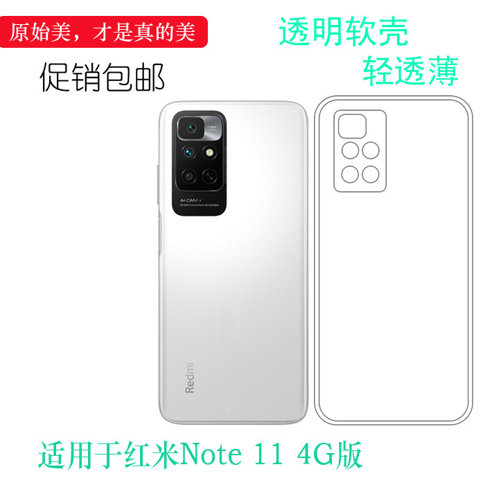 适用小米红米Note 11 4G版透明壳Redmi Note 11 4G手机套硅胶壳软护镜头后盖透白清透隐形软套简单保护轻柔壳
