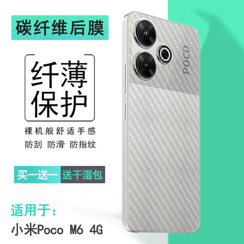 适用小米Poco M6 4G超薄手机后膜Poco M6 4G海外版后盖保护贴纸爽滑磨砂背面膜不留痕抗氧化半高清柔韧精准盾