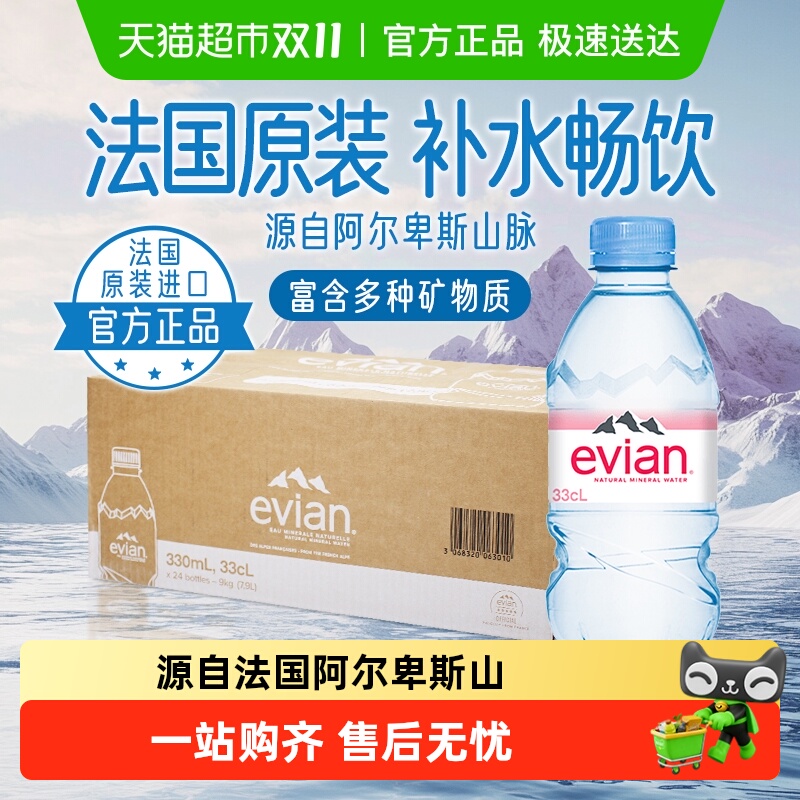 evian依云矿泉水330ml瓶装整箱法国原装进口天然饮用水多省包邮