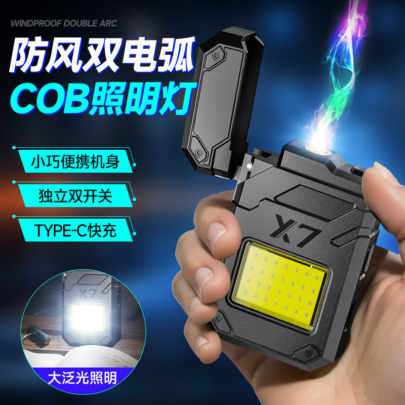 电热丝打火机手电筒TYPE-C充电COB照明灯迷你便携充电式打火机