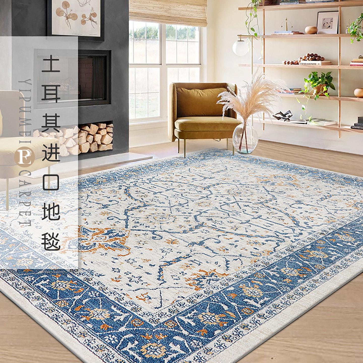 土耳其进口客厅地毯欧式美式沙发轻奢现代茶几复古卧室地垫床边毯