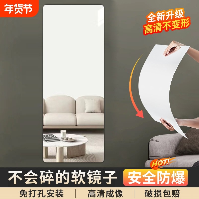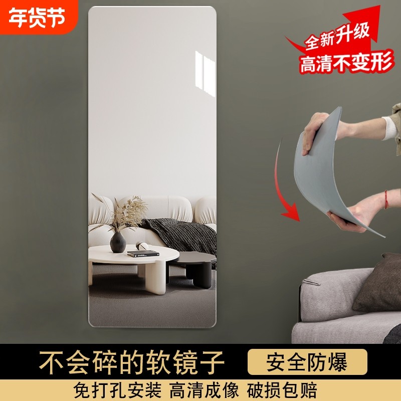 软镜子贴墙自粘亚克力全身穿衣镜家用高清墙面粘贴镜面试衣镜落地