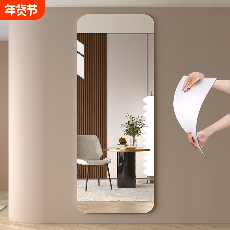亚克力软镜子粘贴穿衣镜全身自粘贴墙家用试衣镜卧室镜面镜片墙贴