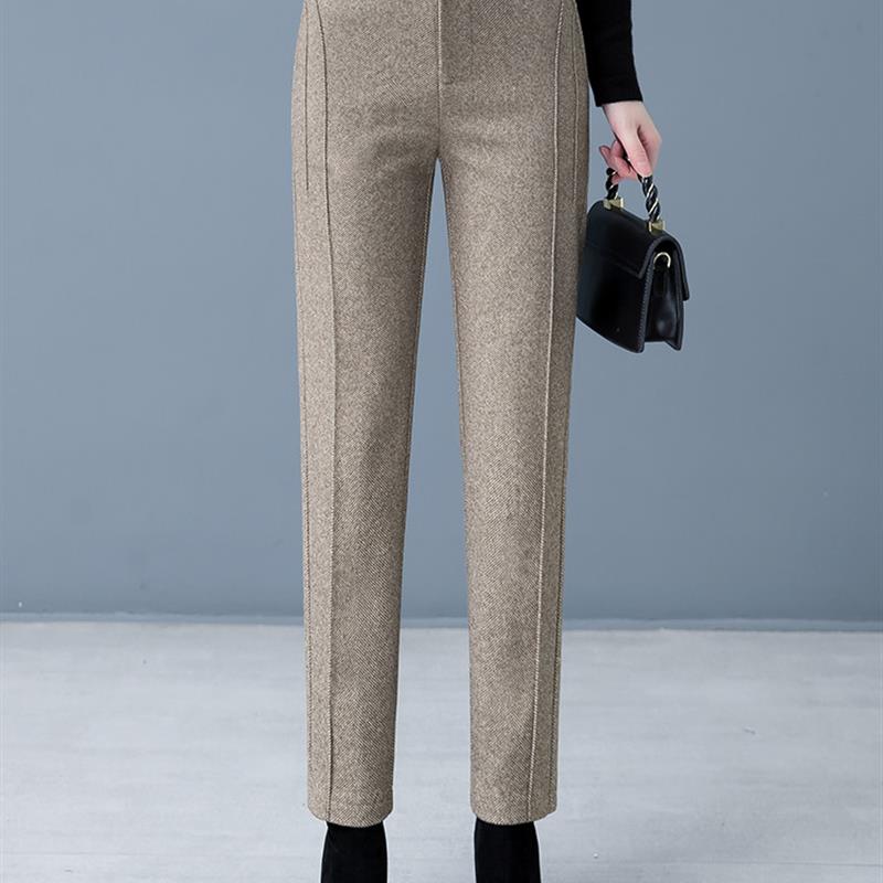 春秋款毛呢裤子女冬季保暖小脚西装裤女显瘦高腰九分哈伦裤女裤子