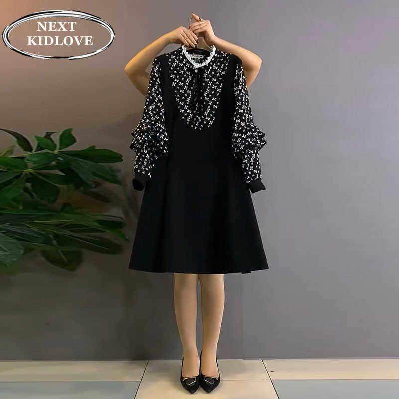 弥古黑色碎花长袖雪纺连衣裙女高级感2025秋冬内搭打底法式茶歇裙