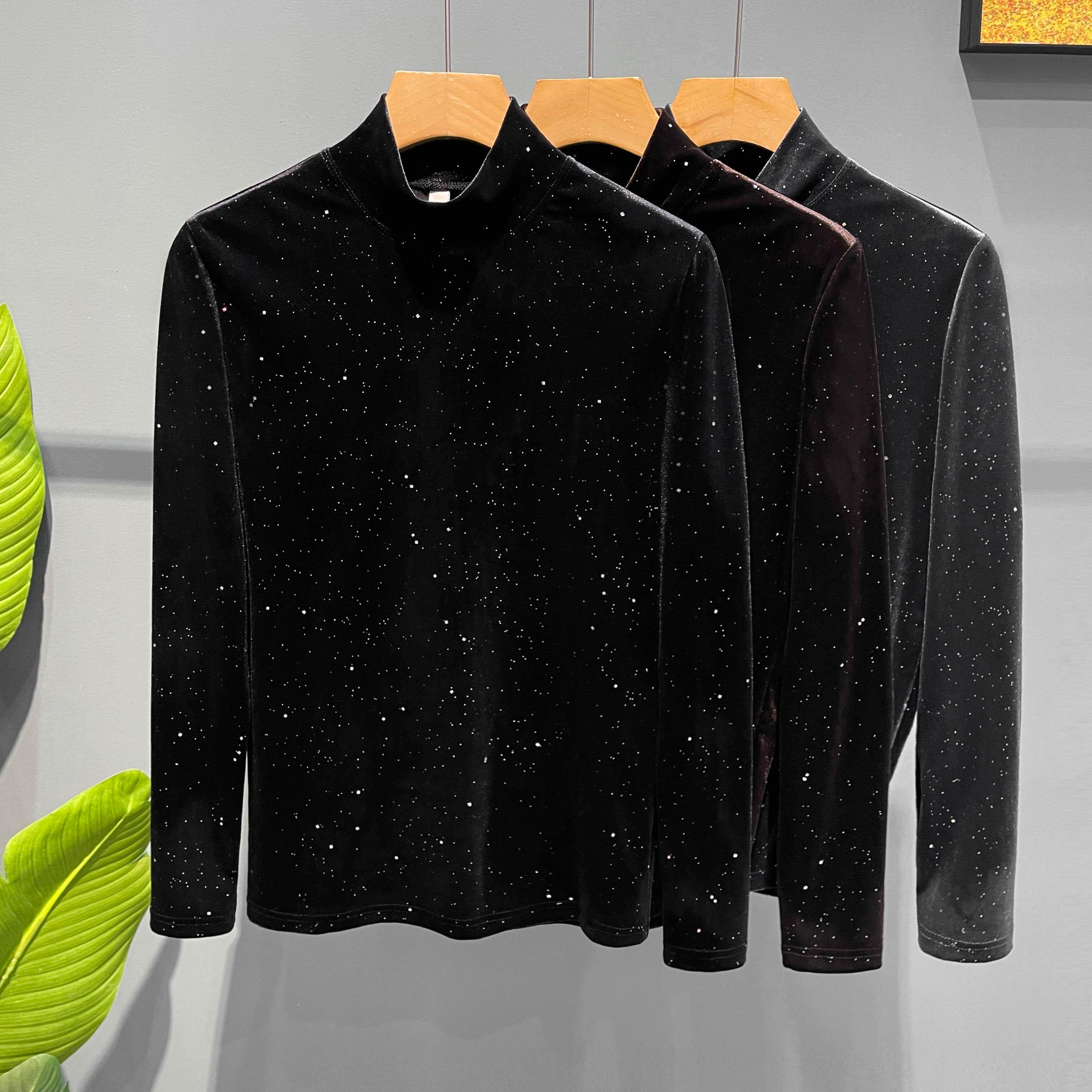 满天星丝绒长袖T恤男士秋装简约休闲打底衫修身气质半高领内搭潮