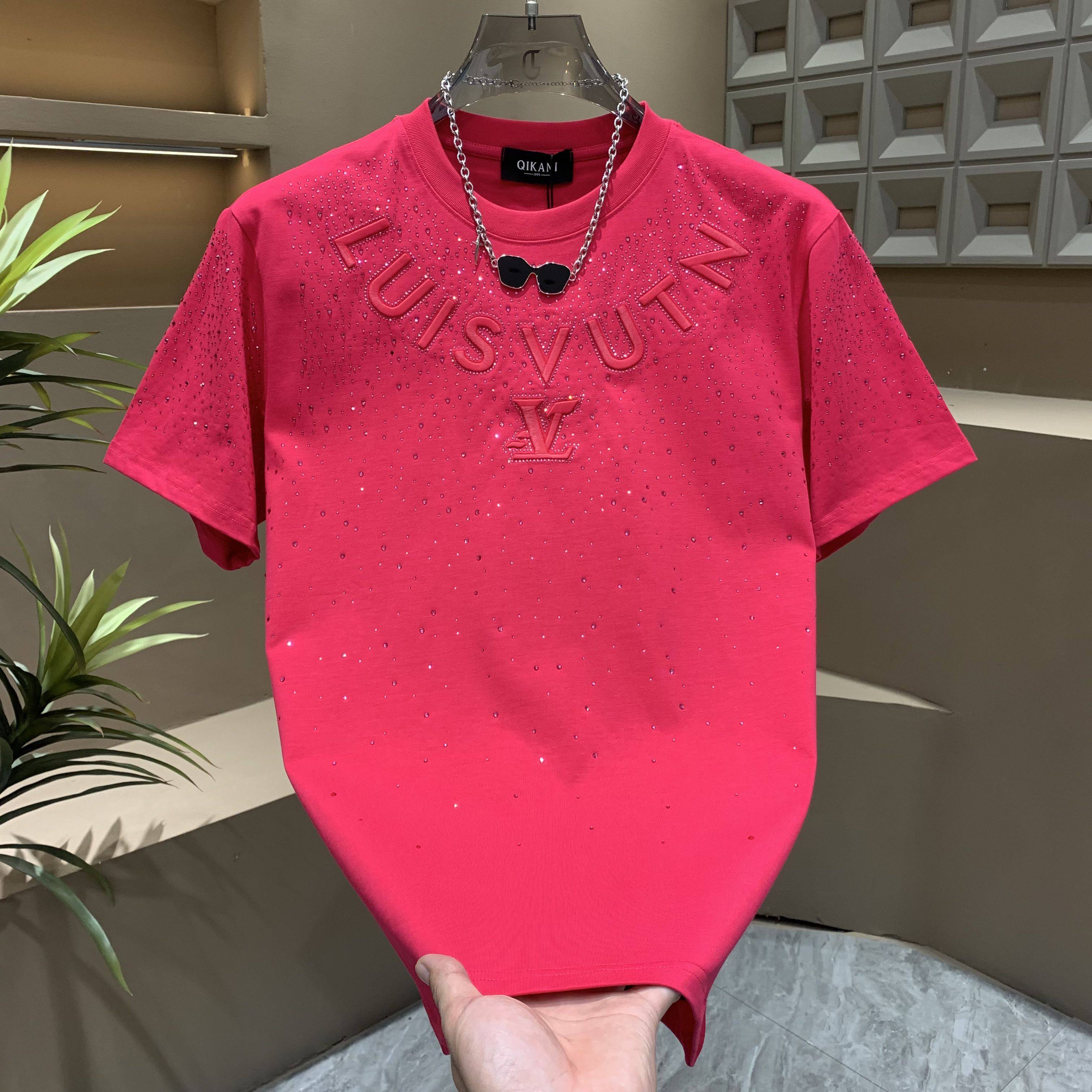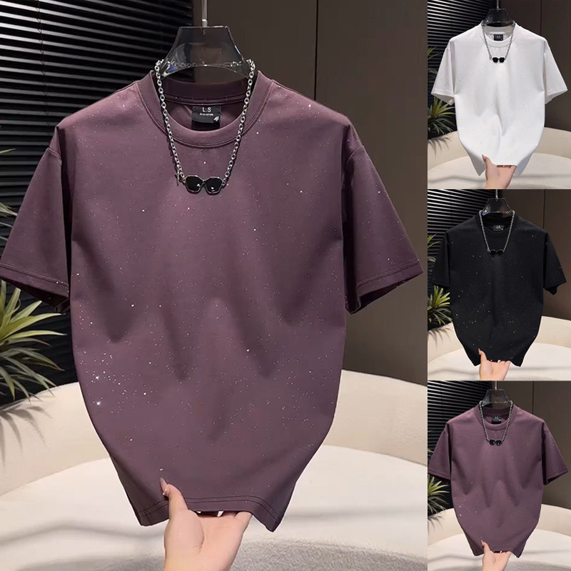 2025夏季短袖t恤男士满天星烫钻T恤圆领宽松半袖轻奢潮流休闲上衣
