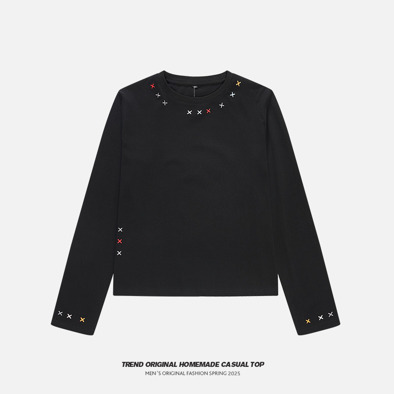 SOINKU满天星圆领长袖打底衫女巨好看的早秋重工别致小众T恤穿搭