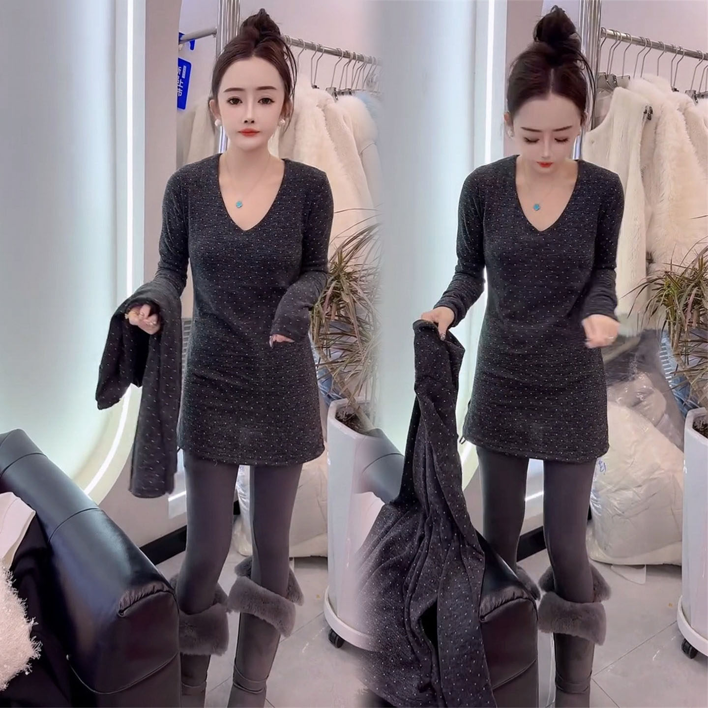 性感V领长袖满天星t恤女2026春季洋气修身显瘦中长款设计感打底衫