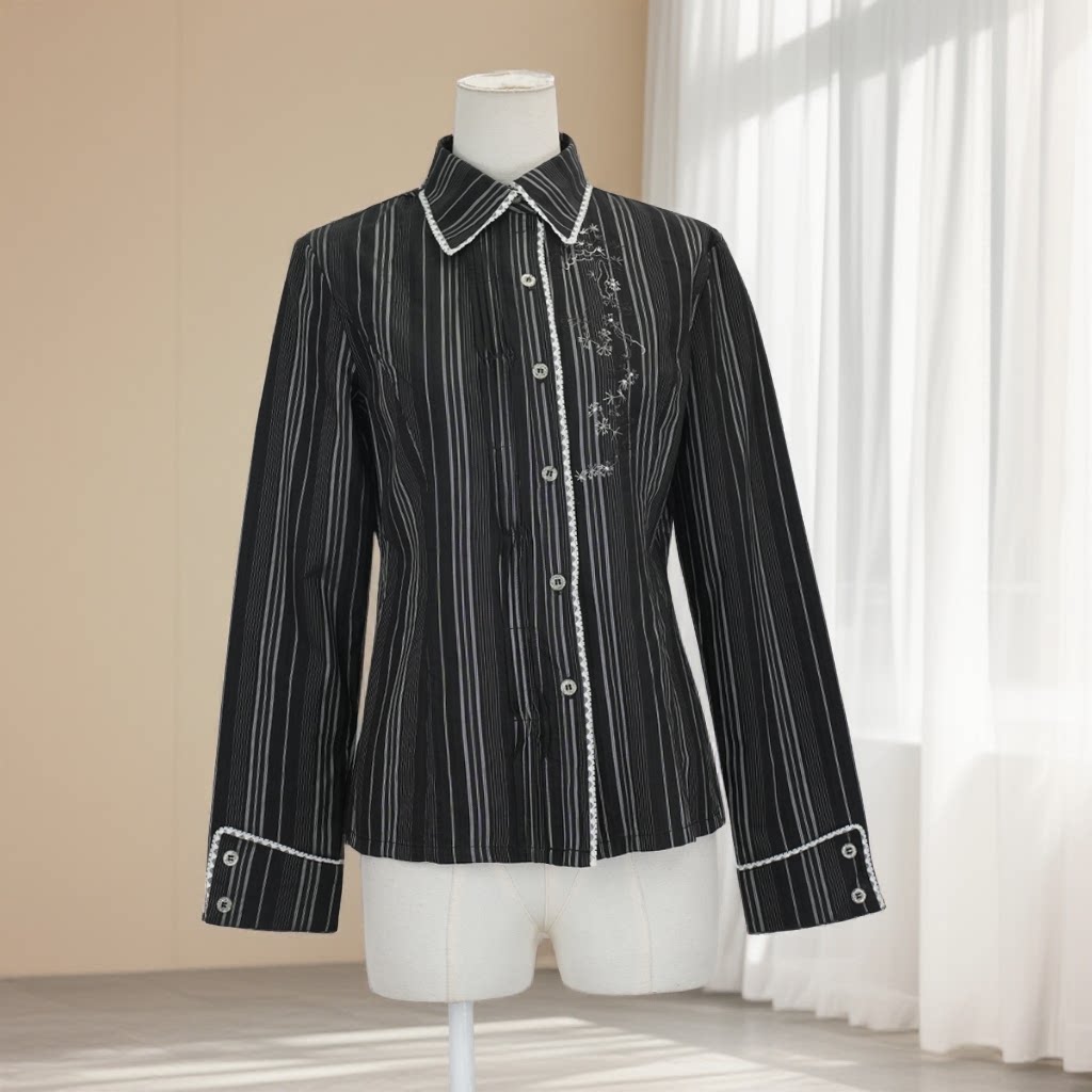 刺绣修身长袖衬衫 女[第10名]