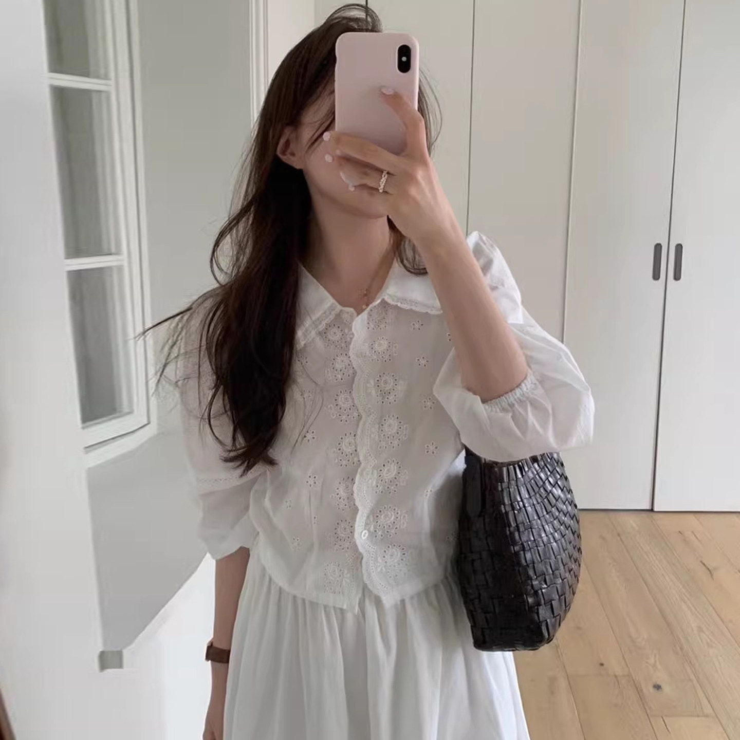 - 中长款纯棉白衬衫女