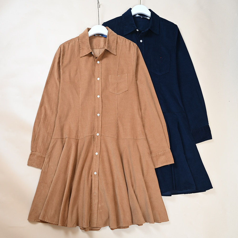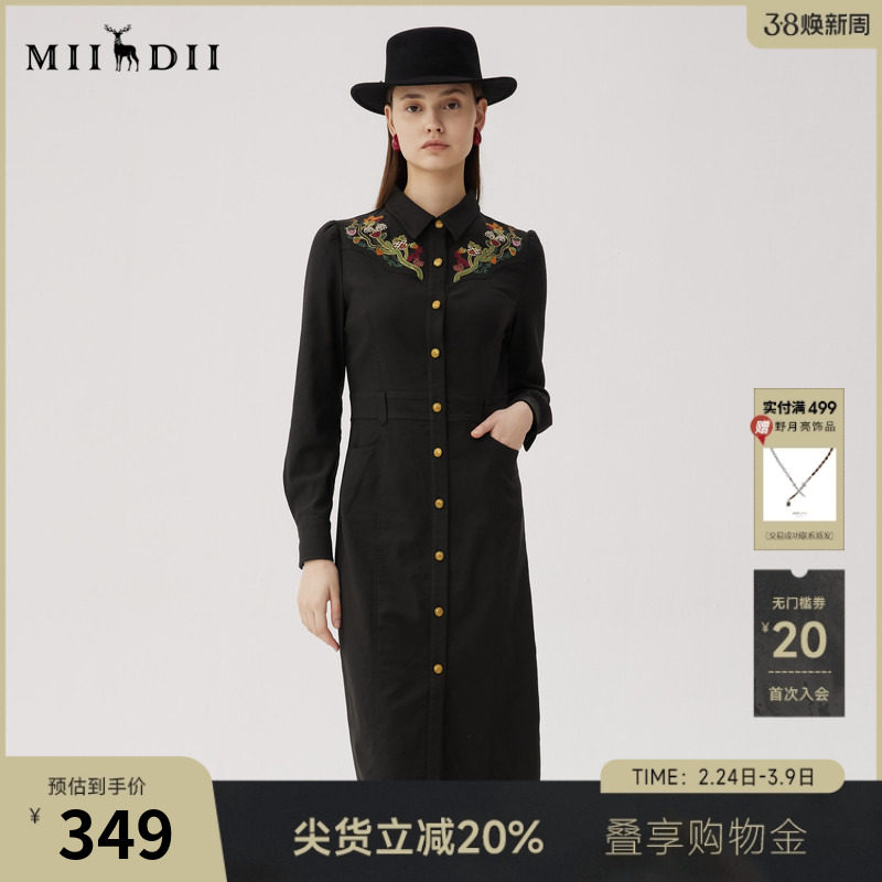 谜底刺绣连衣裙长袖女秋款复古文艺修身衬衫式长裙248ML8301