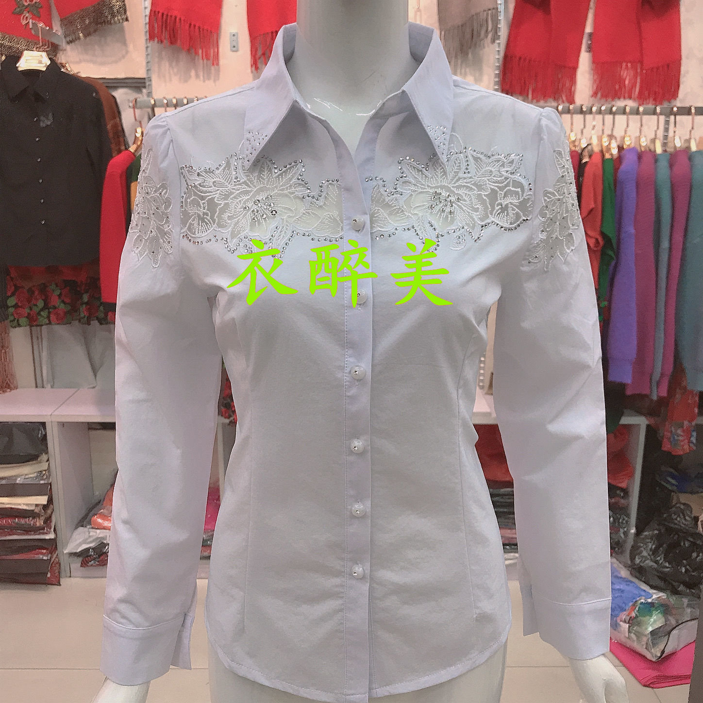 刺绣修身长袖衬衫 女[第8名]
