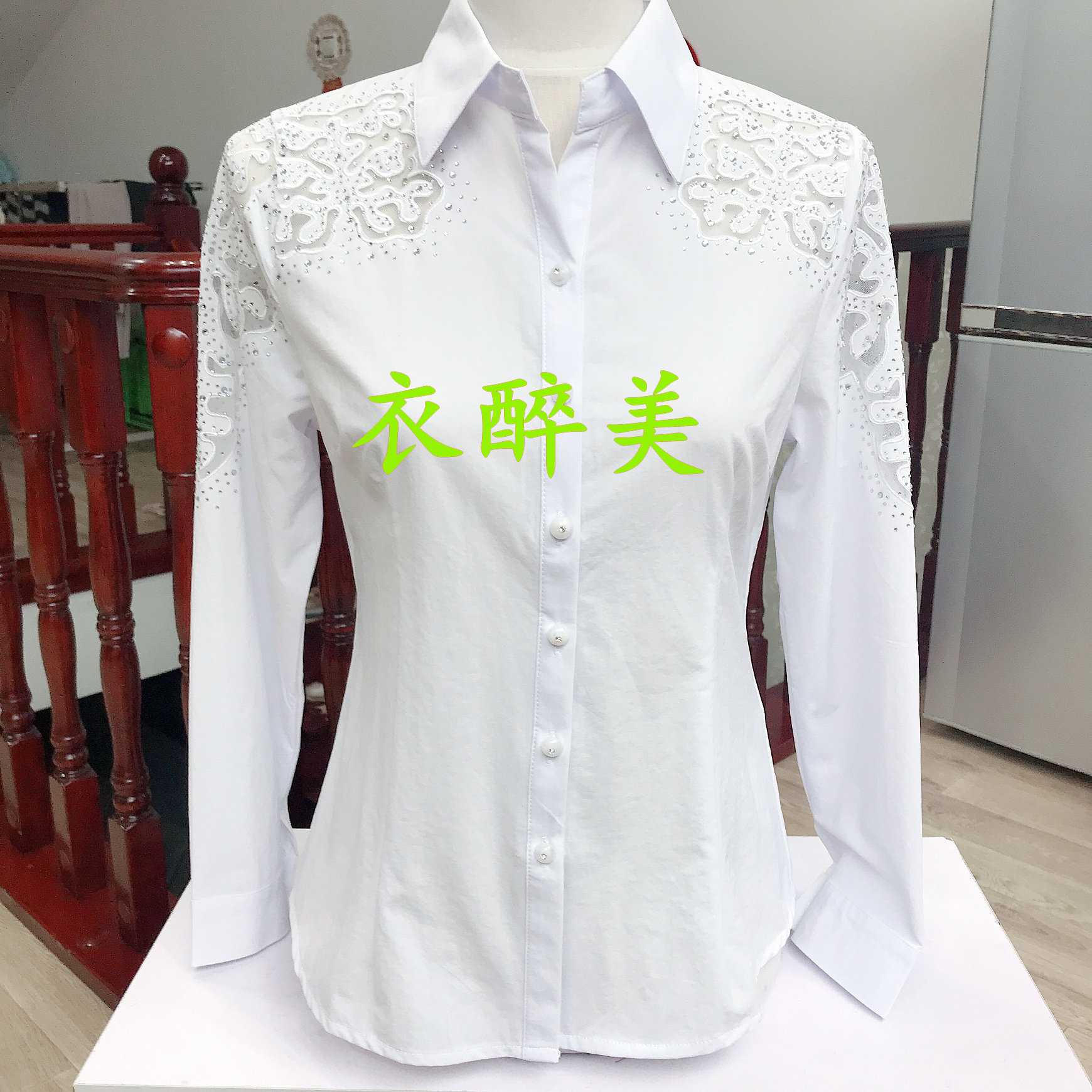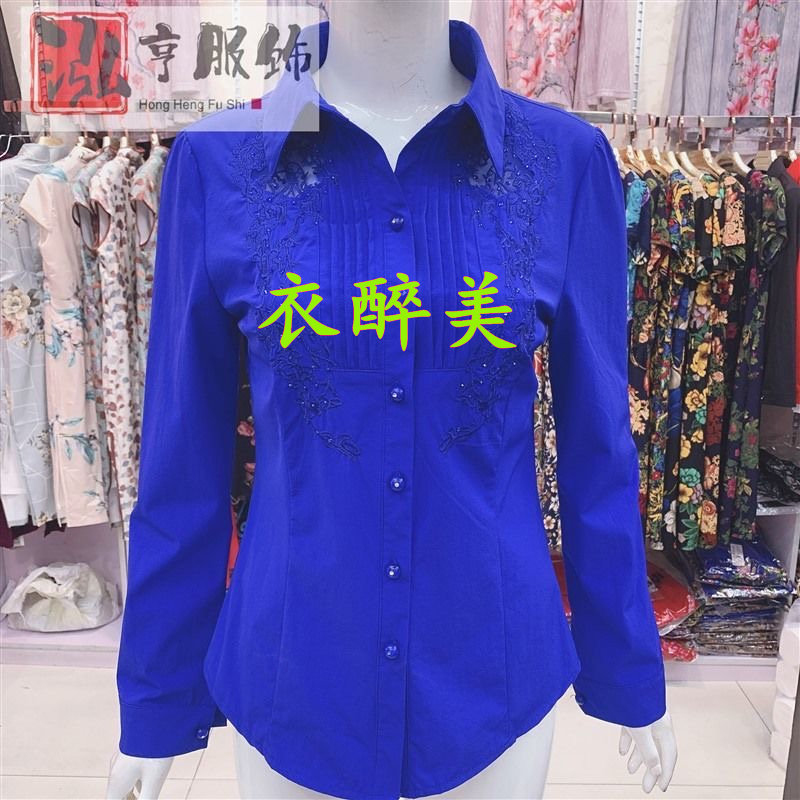 刺绣修身长袖衬衫 女[第7名]