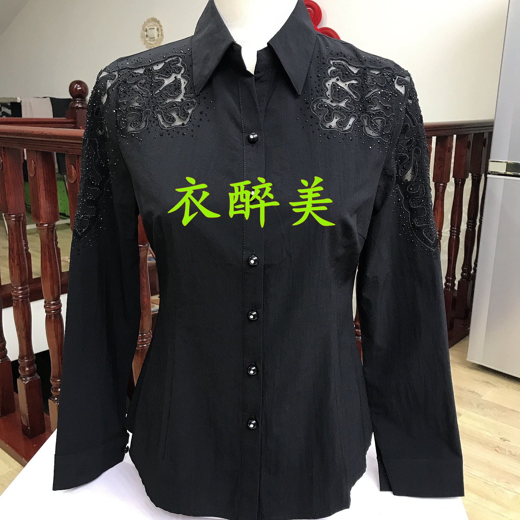 - 黑衬衫雪纺女