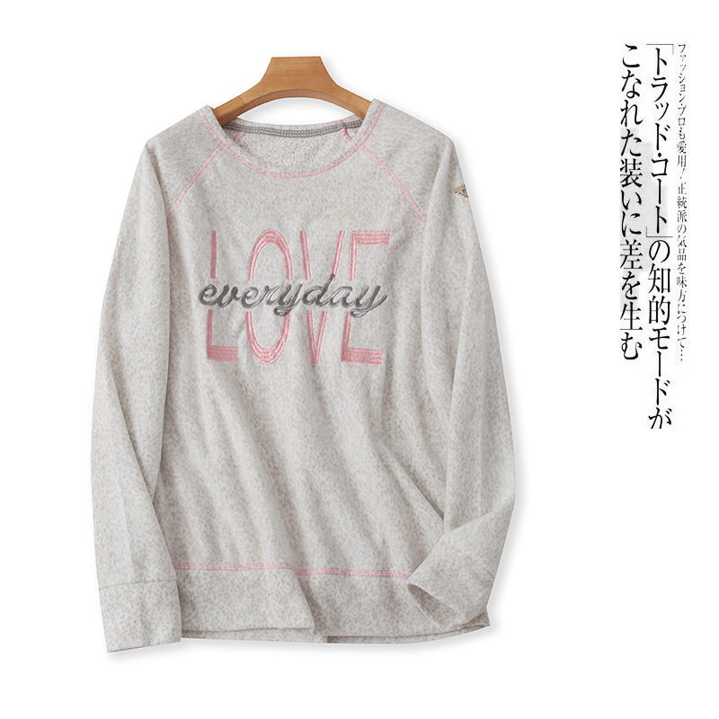刺绣绒卫衣 秋季新款外贸女装时尚圆领套头长袖字母薄绒衣26258