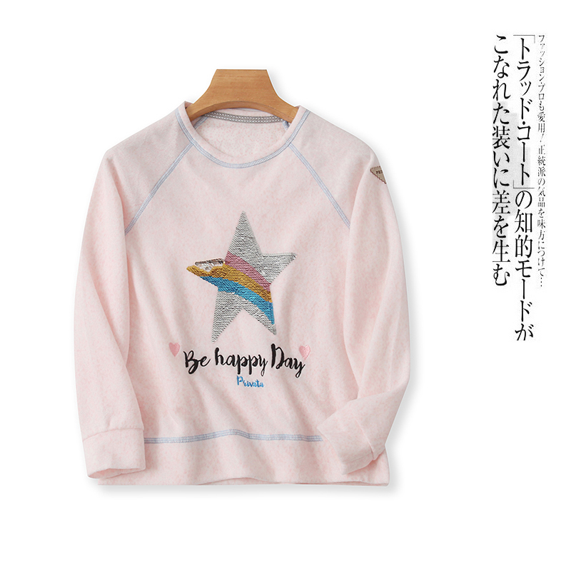 刺绣绒卫衣 秋季新款外贸童装时尚可爱圆领套头长袖薄绒衣26259