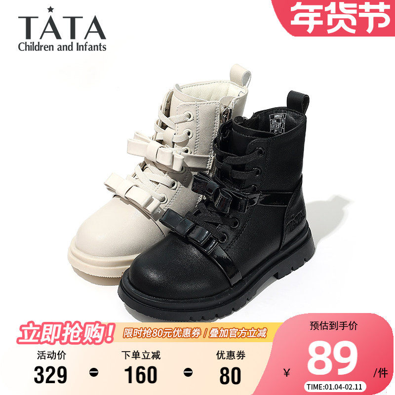 TATA他她童鞋儿童公主靴秋冬时尚百搭马丁靴女童小蝴蝶洋气时装靴