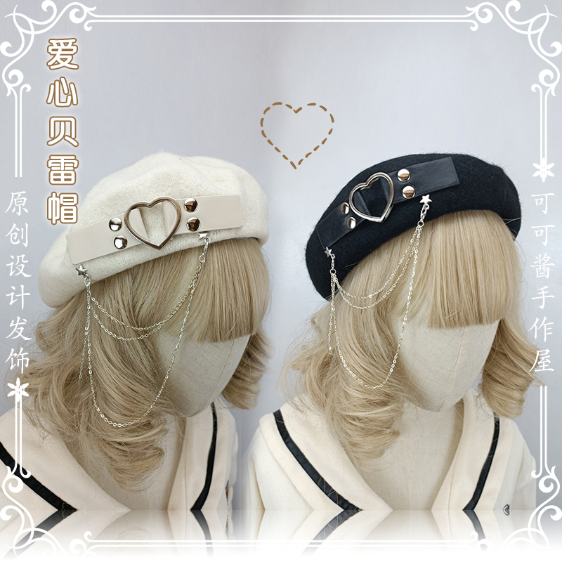原创设计joker贝雷帽帅硬妹lolita蓓蕾帽黑色朋克哥特爱心链条帽