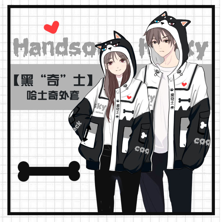 现货!【黑“奇”士】哈士奇冲锋衣加绒外套 二哈情侣酷帅硬妹外套