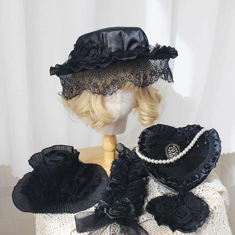 原创手作暗黑硬妹风哥特搞死波奈特帽 lolita黑色小物华丽bnt帽子
