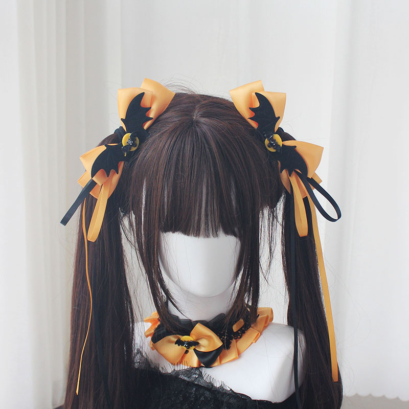 暗黑少女硬妹风蝙蝠恶魔翅膀对夹lolita 辣妹飘带边夹发饰 万圣节