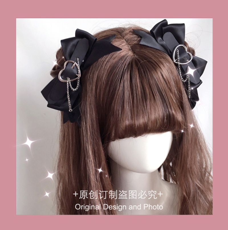 洛丽塔头饰硬妹酷朋克风爱心手作蝴蝶结发夹jk黑甜爱心lolita发饰