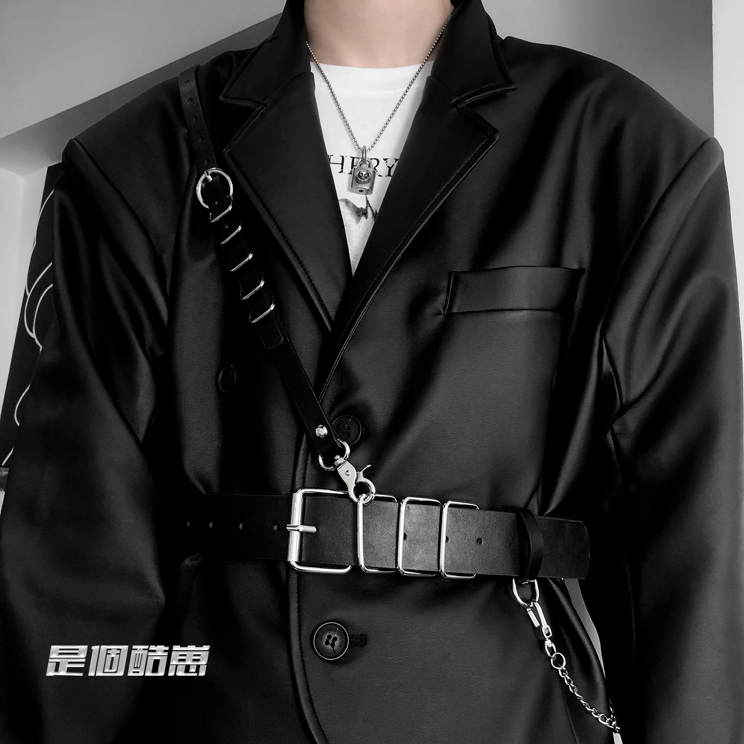 是个酷崽朋克硬妹腰带背带多功能摇滚斜跨PU皮背带小众装饰可拆卸