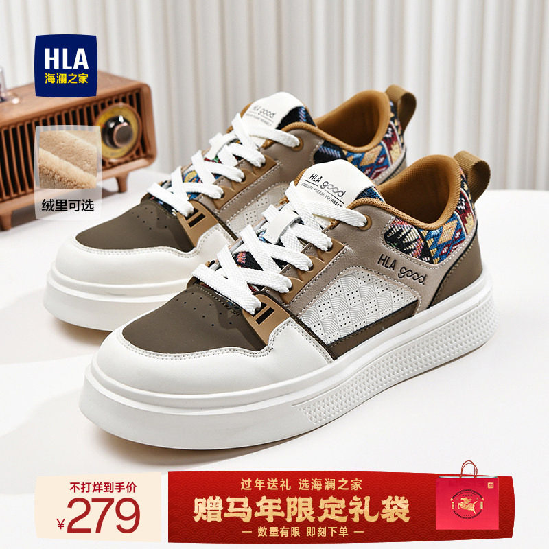 HLA/海澜之家男鞋2025冬季百搭潮鞋增高加绒青少年休闲小白板鞋男