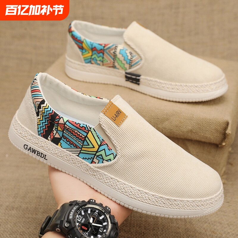 老北京布鞋男士2026新款夏季透气休闲帆布鞋千层底一脚蹬薄款潮鞋
