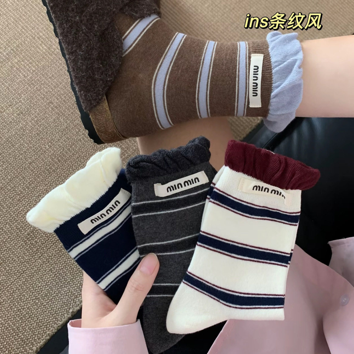 美拉德女士袜子ins潮百搭堆堆袜女条纹袜子女士长袜子女中筒秋冬