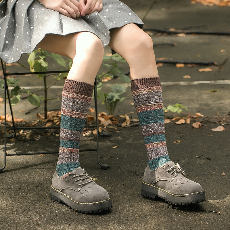 韩国堆堆袜子加长款中筒高筒潮复古日系秋冬款粗毛线个性条纹女袜