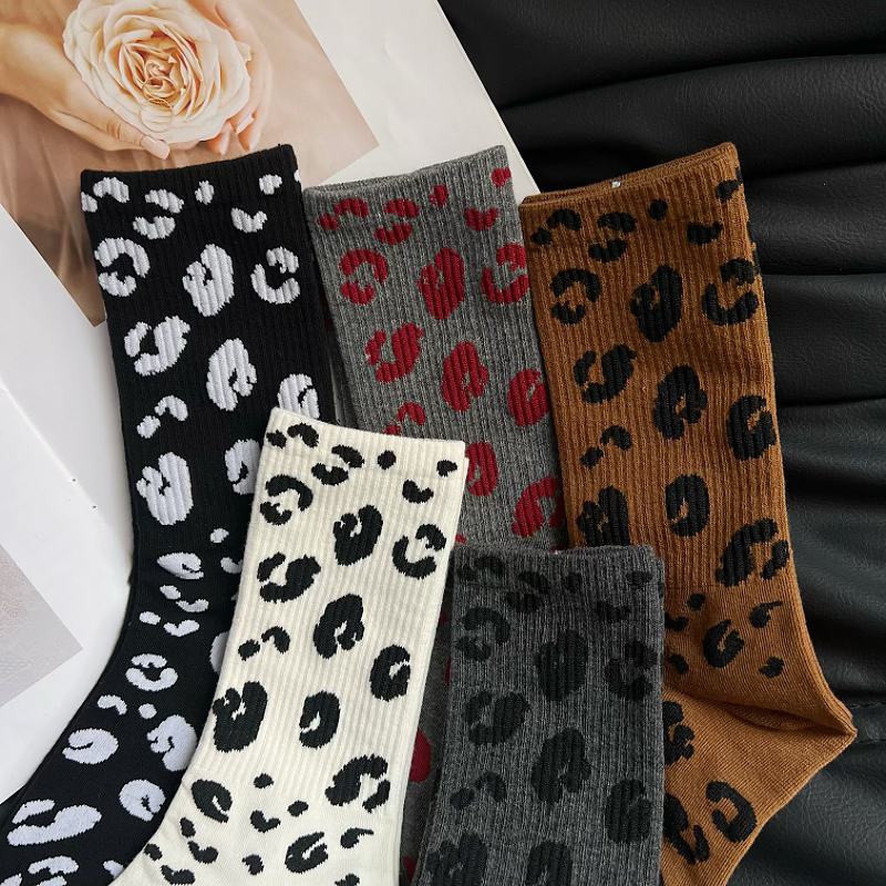 袜子女秋冬纯棉ins潮安哥拉红豹纹高腰长筒袜韩国百搭时尚堆堆袜