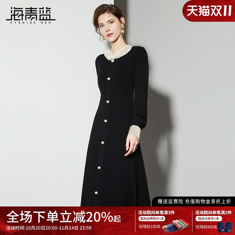 - 黑色连衣裙秋冬款蕾丝