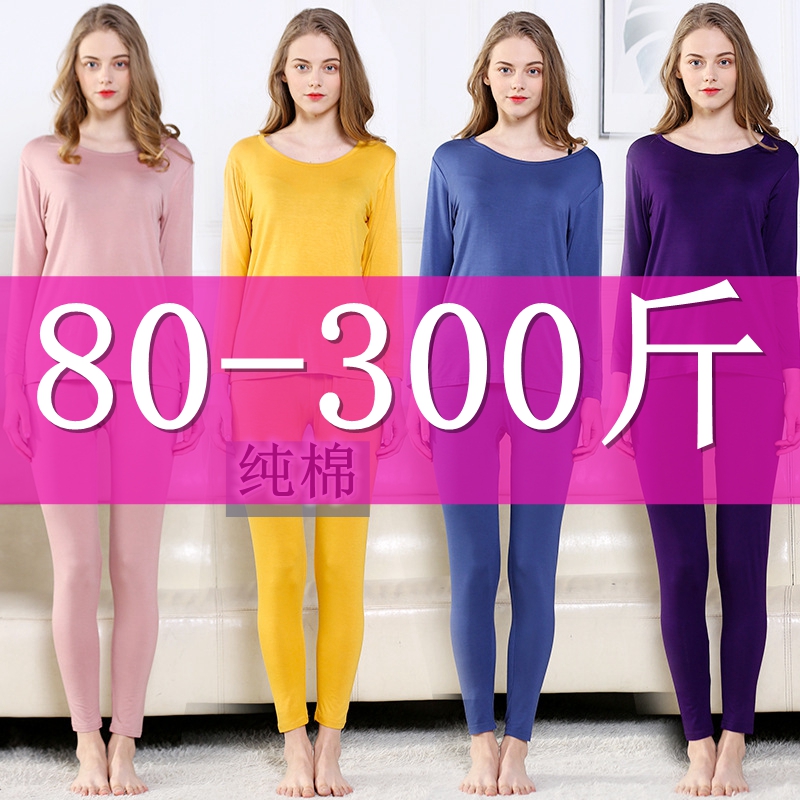 300斤200女士加肥加大纯棉秋衣秋裤套装女薄款胖mm内衣特大码保暖