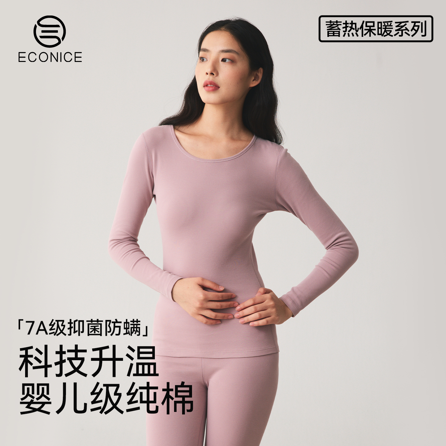 爱舒肤49340纯棉秋衣秋裤套装女圆领7A抑菌双面舒绒保暖衣爱纯棉