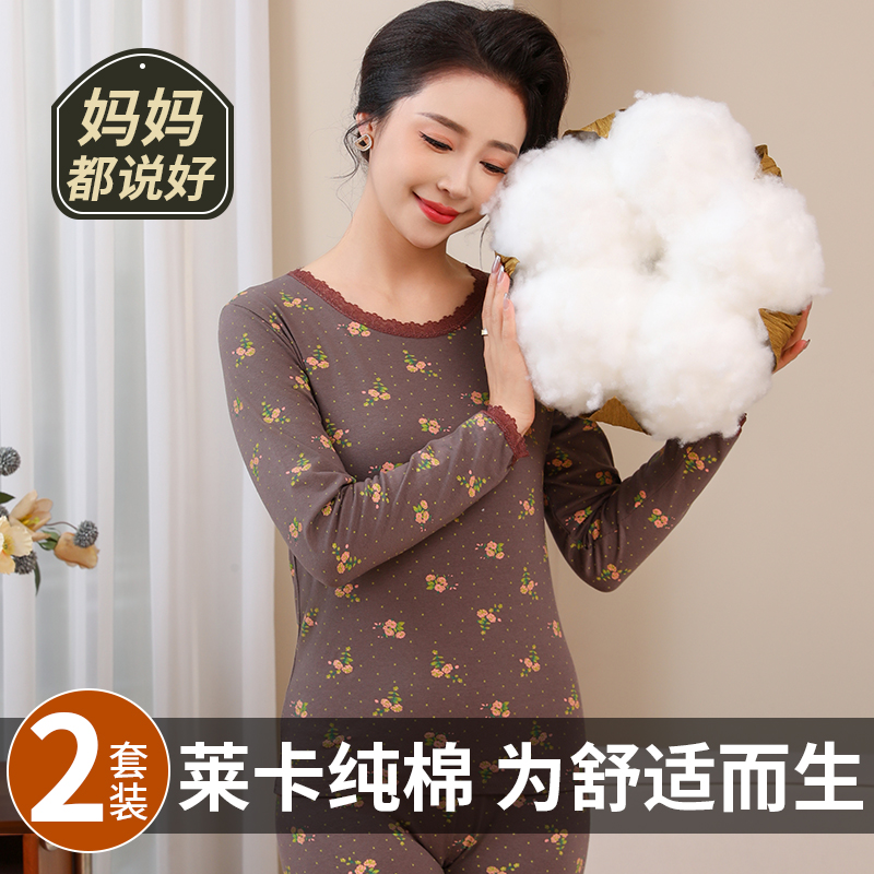 纯棉秋衣秋裤套装女中年妈妈老年人棉毛衫秋冬打底莱卡棉保暖内衣