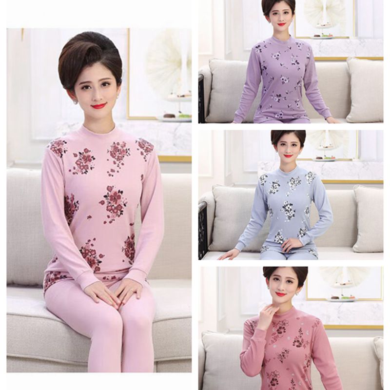 中高领纯棉秋衣秋裤套装女中老年保暖内衣棉毛衫全棉宽松线衣线裤