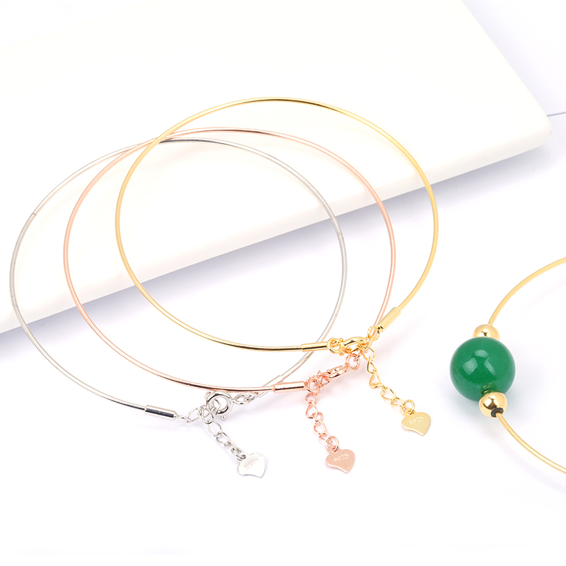 S925纯银螺丝手镯 手工DIY手链可串珠子针式穿心链手环银镀金手圈
