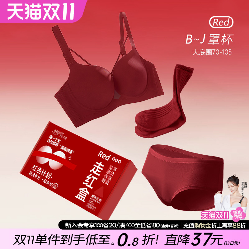 礼盒|蕉内红色计划511S文胸套装内衣无痕女小胸聚拢红色本命年
