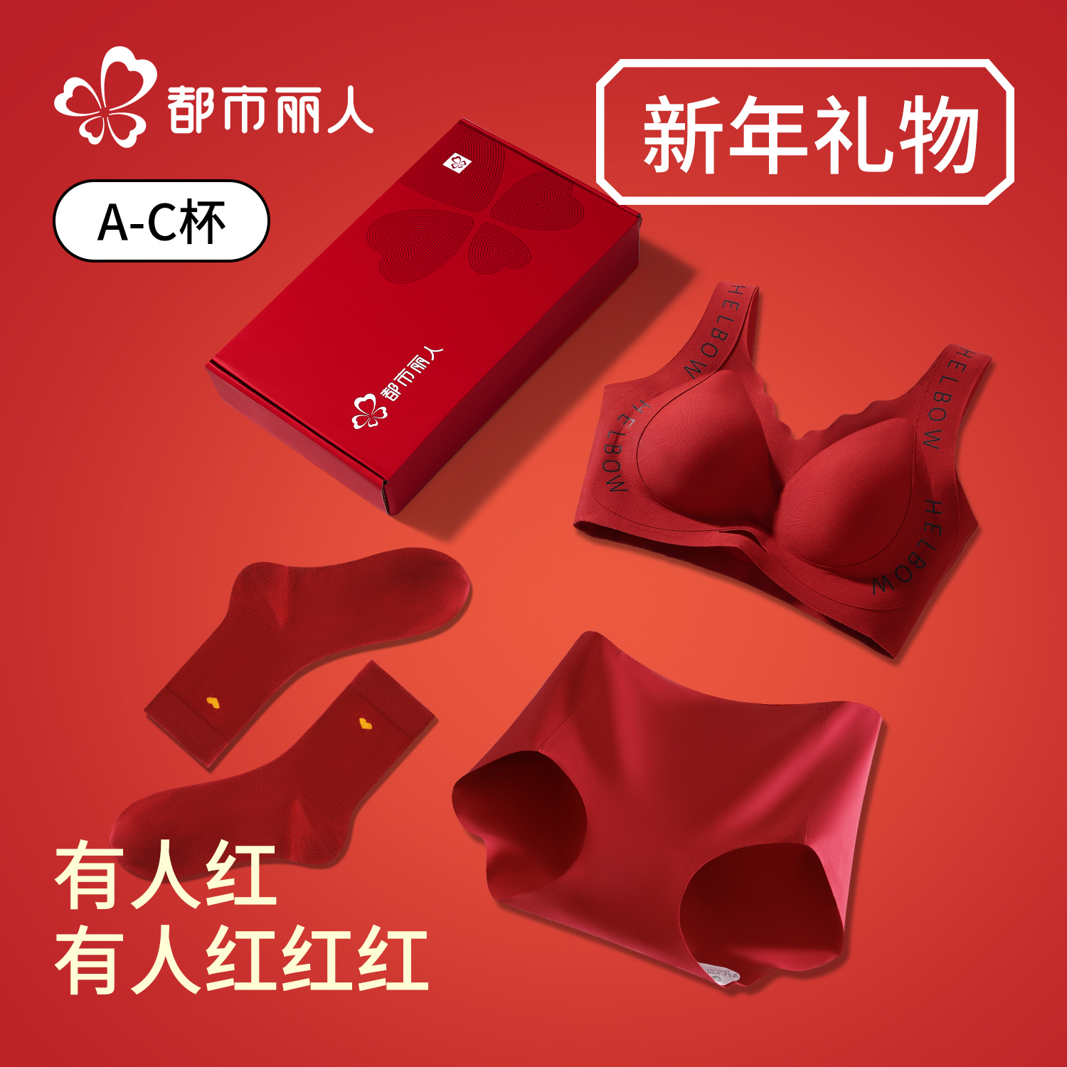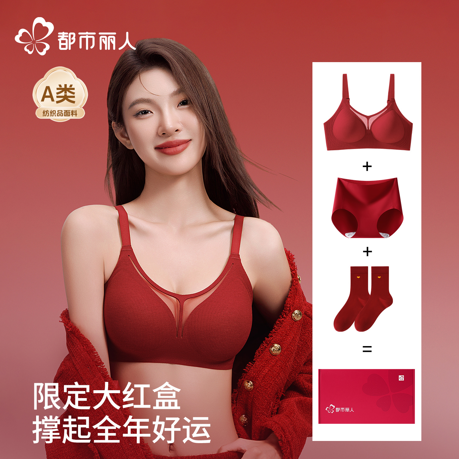都市丽人红色内衣女小胸聚拢2026新款结婚新娘礼盒套装本命年文胸