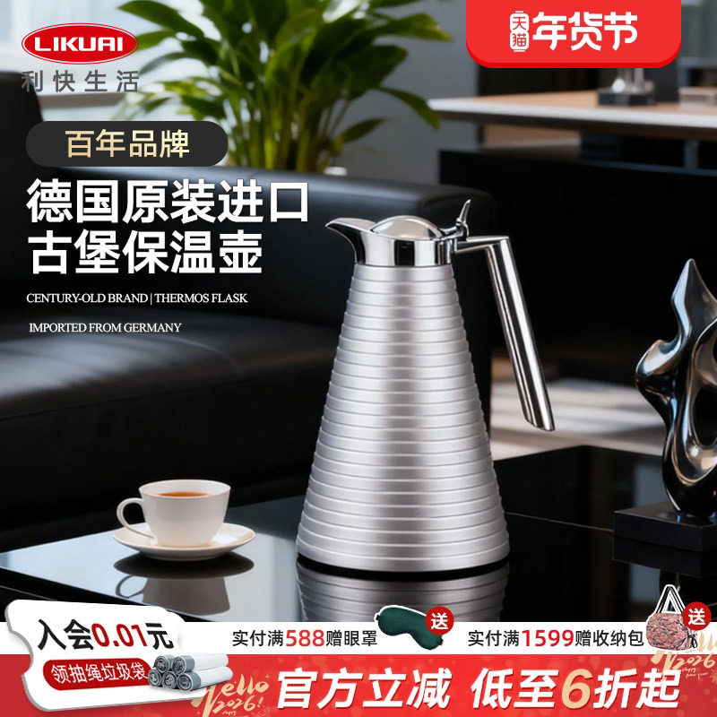 利快德国进口按压式保温壶Achat古堡欧式保温热水瓶暖壶1L大容量