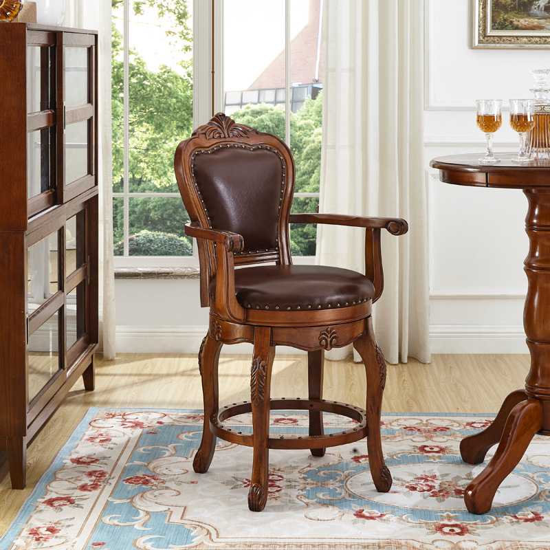 新款直销欧式实木酒吧椅高靠背高脚凳美式雕花吧椅旋转椅家用高吧