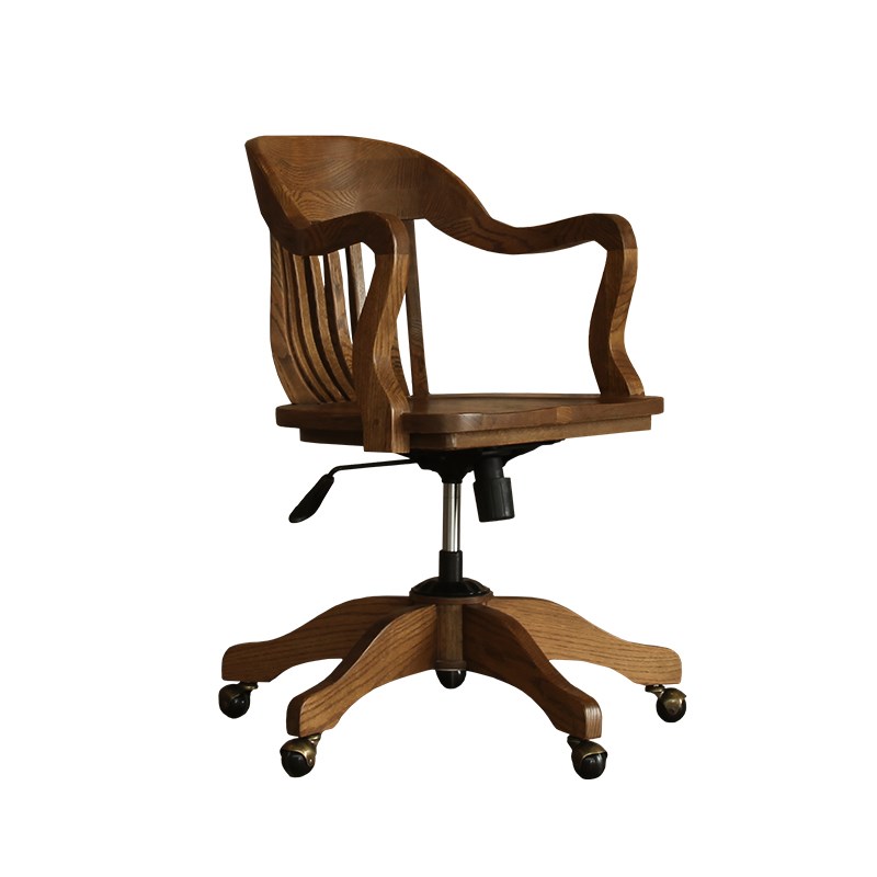 美式单人升降实木椅电脑椅家用轻奢复古欧式小户型办公室会议转椅